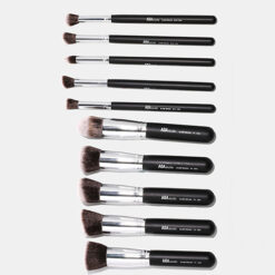 Una colección de diez pinceles de maquillaje vegano de estilo kabuki de tamaño completo que le ayudan a contornear, esculpir, difuminar y resaltar un aspecto impecable.