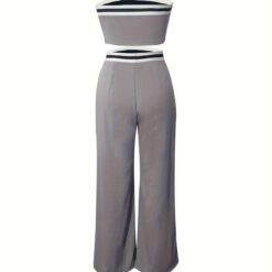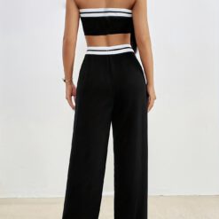 Conjunto de pantalones casuales sexys con bloques de color, top corto y pantalones de cintura alta – Black