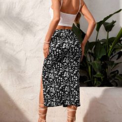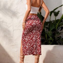 Conjunto de dos piezas para vacaciones de verano que incluye una parte superior de tirantes sólidos y una falda – Rojo