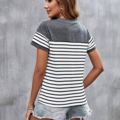 Camiseta con estampado de rayas de cuello redondo – Gris Oscuro