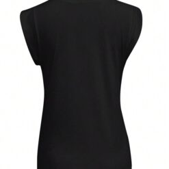 Chaleco monocolor minimalista para mujer, blusa de oficina para uso diario – Negro