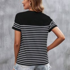 Camiseta con estampado de rayas de cuello redondo – Blanco y Negro