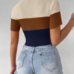 Camiseta tejida de canalé de color combinado de cuello alto – Multicolor