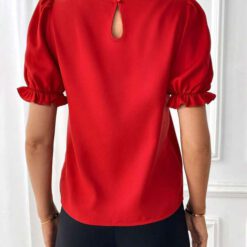 Blusa unicolor de manga farol con diseño fruncido – Rojo