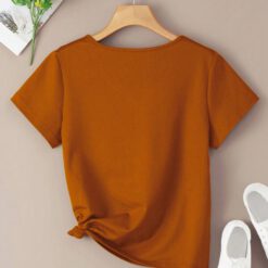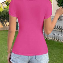 Camiseta de manga corta de cuello cuadrado de verano para mujer con unicolor y ajuste ceñido – Rosa Fucsia
