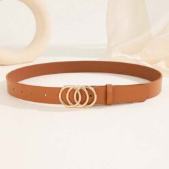 1 Pieza Cinturón De Oro Versátil Y A La Moda Con Hebilla De Tres Círculos – Camel