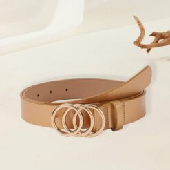 1 pieza Cinturón de mujer con hebilla de tres aros dorados – Dorado