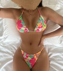 Bañador bikini triángulo halter con estampado floral – Multicolor