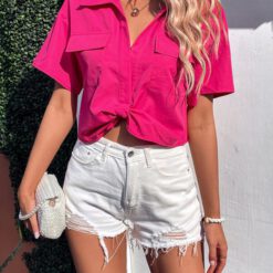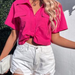 Blusa con bolsillo con solapa de hombros caídos – Rosa Fucsia