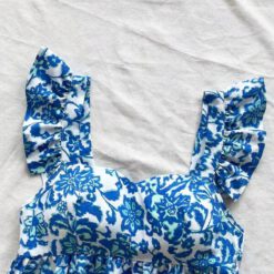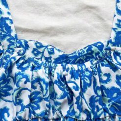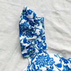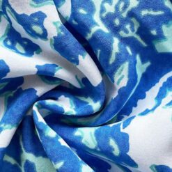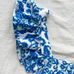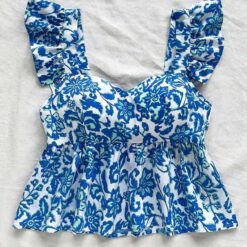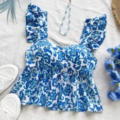 Blusa de manga corta con estampado azul y blanco para vacaciones de mujeres – Azul y blanco