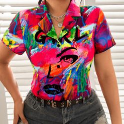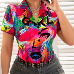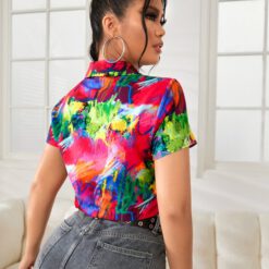 Blusa figura & con estampado de pincelada – Multicolor