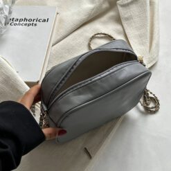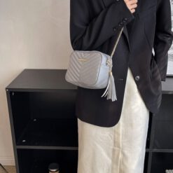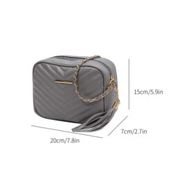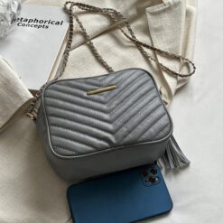 Bolsa cuadrada mini de cheurón con diseño de fleco con cadena Gris