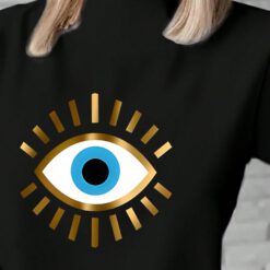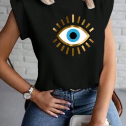 Camiseta Casual Con Cuello En Pie Y Estampado De Ojo Malvado – Negro