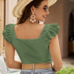 Camiseta de cuello cuadrado ribete con fruncido – Verde