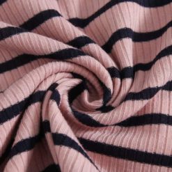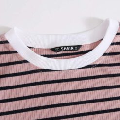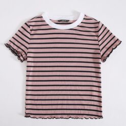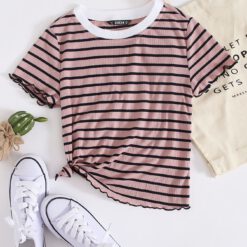 Camiseta de rayas de borde en forma de lechuga de cuello en contraste – Rosa vieja