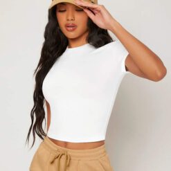 Camiseta unicolor forma ajustada – Blanco