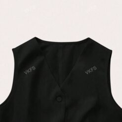 Chaleco blazer liso con botones delanteros elegante y casual para mujer – Negro