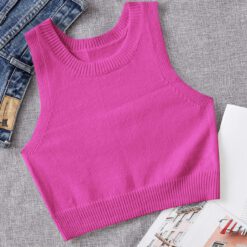 Chaleco de punto unicolor tejido de canalé – Rosa Fucsia
