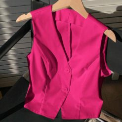 Chaleco de traje sin mangas de unicolor para mujer – Rosa Fucsia