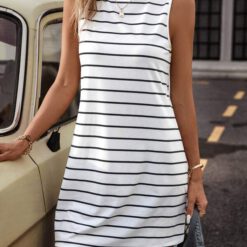 Clásico Vestido Blanco A Rayas Sueltas Con Línea A Para Mujeres – Blanco
