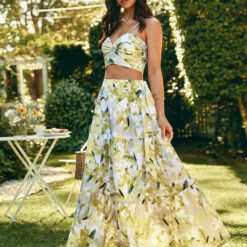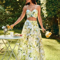 Conjunto de 2 piezas para verano con top sin mangas con tirantes espagueti – Amarillo
