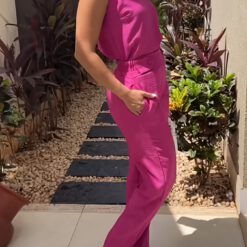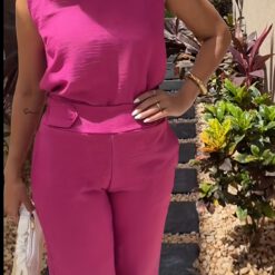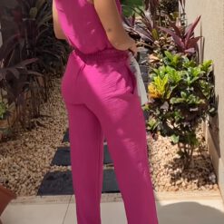 Conjunto de dos piezas a juego con detalle de botón de bolsillo inclinado – Rosa roja