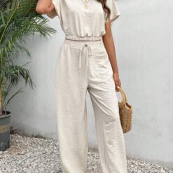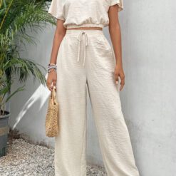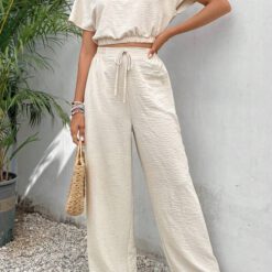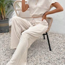 Conjunto de pantalón para mujer con textura holgada – Albaricoque