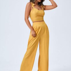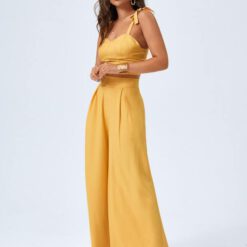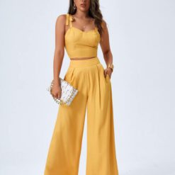 Conjunto De Top Cami Con Tirantes Con Lazo Y Pantalones De Pierna Ancha – Amarillo