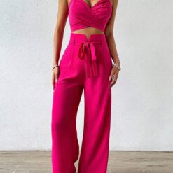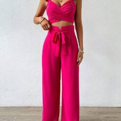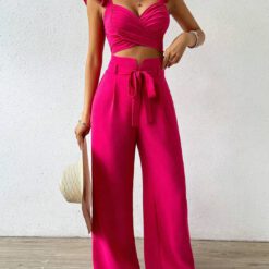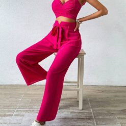Conjunto De Top De Color Sólido Con Escote En Forma De Corazón – Albaricoque