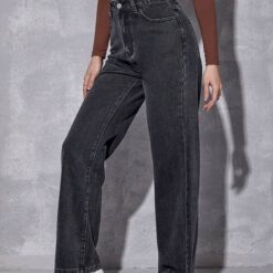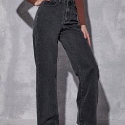 Jeans Casuales De Pierna Recta Lavados Con Agua – Gris Oscuro