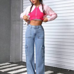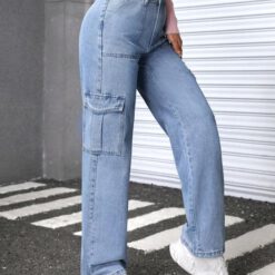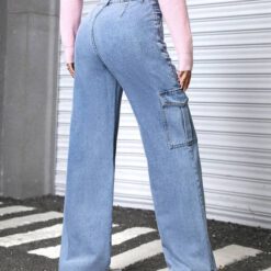 Jeans De Carga De Color Sólido – Azul lavado medio