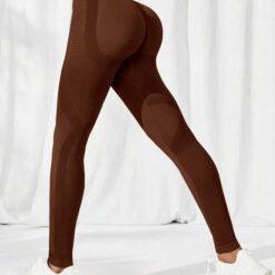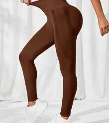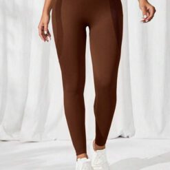 Leggings deportivos control de barriga unicolor – Marrón Chocolate