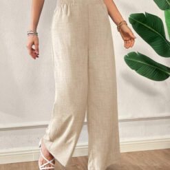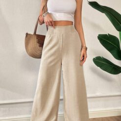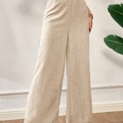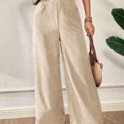 Pantalones anchos de pierna ancha de unicolor casual para vacaciones de verano para mujeres – Albaricoque