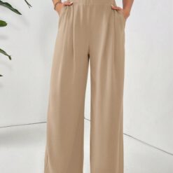 Pantalones básicos diarios simples de unicolor para mujer – Caqui