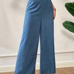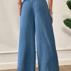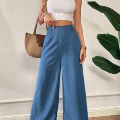 Pantalones informales azules de cintura alta y pierna ancha para vacaciones de verano – Azul