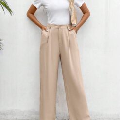 Pantalones rectos casuales y sencillos de talla suelta – Albaricoque