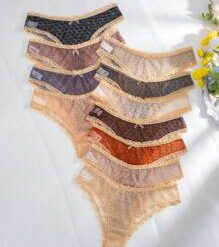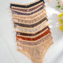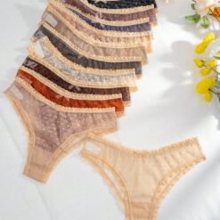 Panties Triangulares De Malla Con Ribete De Encaje – Multicolor