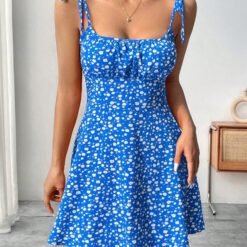 Pequeño Vestido De Verano Con Diseño Floral, Con Cintura Estilo Imperio Y Tirantes – Azul
