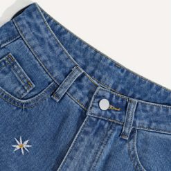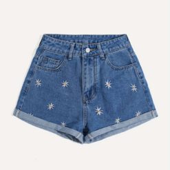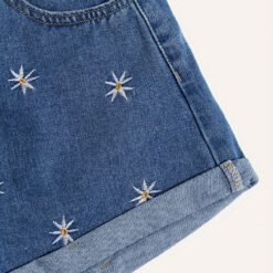 Shorts de mezclilla casuales con diseño floral bordado – Azul medio