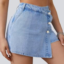 Shorts de mezclilla sólidos elegantes, falda pantalón con dobladillo cruzado – Celeste cielo profundo