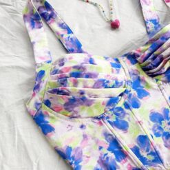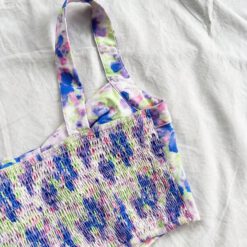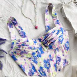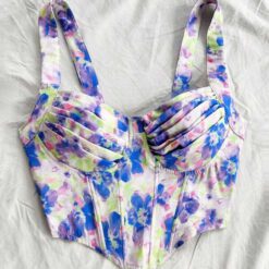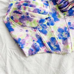 Top corto tipo bustier con estampado floral y bajo asimétrico para mujer – Multicolor
