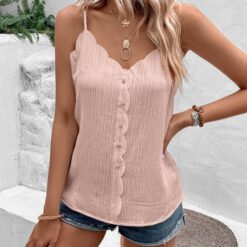 Top de tirantes ribete en abanico con botón delantero – Rosa vieja
