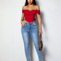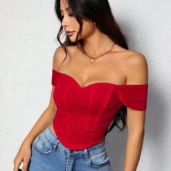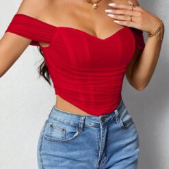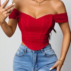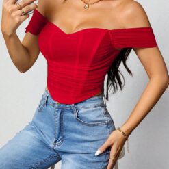 Top Rojo de mujer con diseño plisado y un hombro descubierto – Rojo