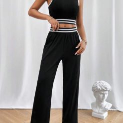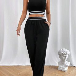 Top tank crop unido en contraste con pantalones – Negro