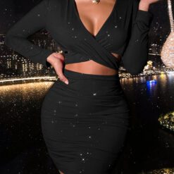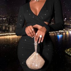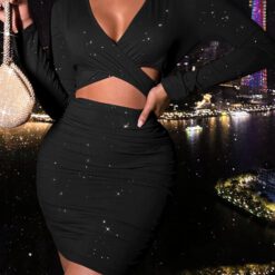 Vestido ajustado de cuello profundo con abertura delantera – Negro