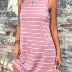 Vestido Clásico Con Rayas De Ajuste Holgado En A Sin Mangas – Rosa