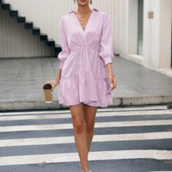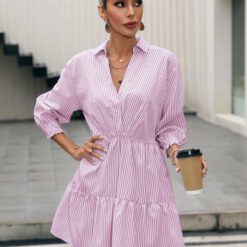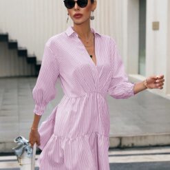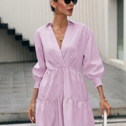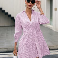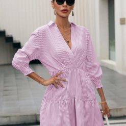 Vestido con estampado de rayas bajo con fruncido – Rosa