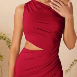 Vestido de dama de honor rojo burdeos con un hombro, corte y envolvente – Burdeos