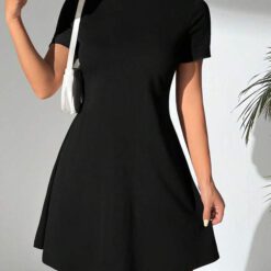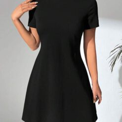 Vestido De Mujer A-línea Con Mangas Cortas – Negro