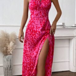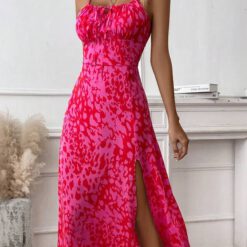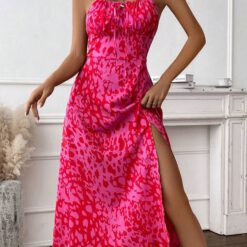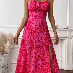 Vestido de tirantes con estampado con cordón delantero de muslo con abertura – Multicolor